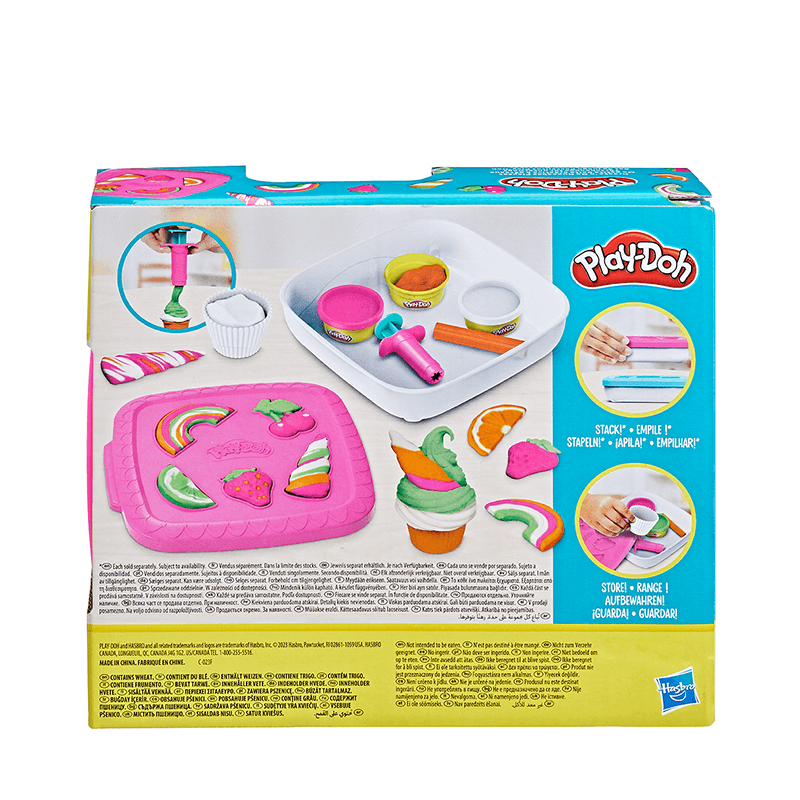 ¡El set de juego Pastelitos Play-Doh tiene todo lo que los niños y las niñas necesitan para hacer creativos pastelitos Play-Doh! Incluye 113 gramos de masa para moldear Play-Doh de diferentes colores, 1 molde para pastelitos, 1 rodillo y 1 extrusor para hacer glaseados de juguete. El práctico recipiente reutilizable sirve, además, para guardar las piezas cuando termines de jugar y cuenta con medio moldes decorativos en la tapa para crear fresas, cerezas, arcoíris y mucho más y, así, aportar más diversión al juego. Estos sets para juego imaginativo son ideales para que niños y niñas a partir de 3 años hagan incontables manualidades.